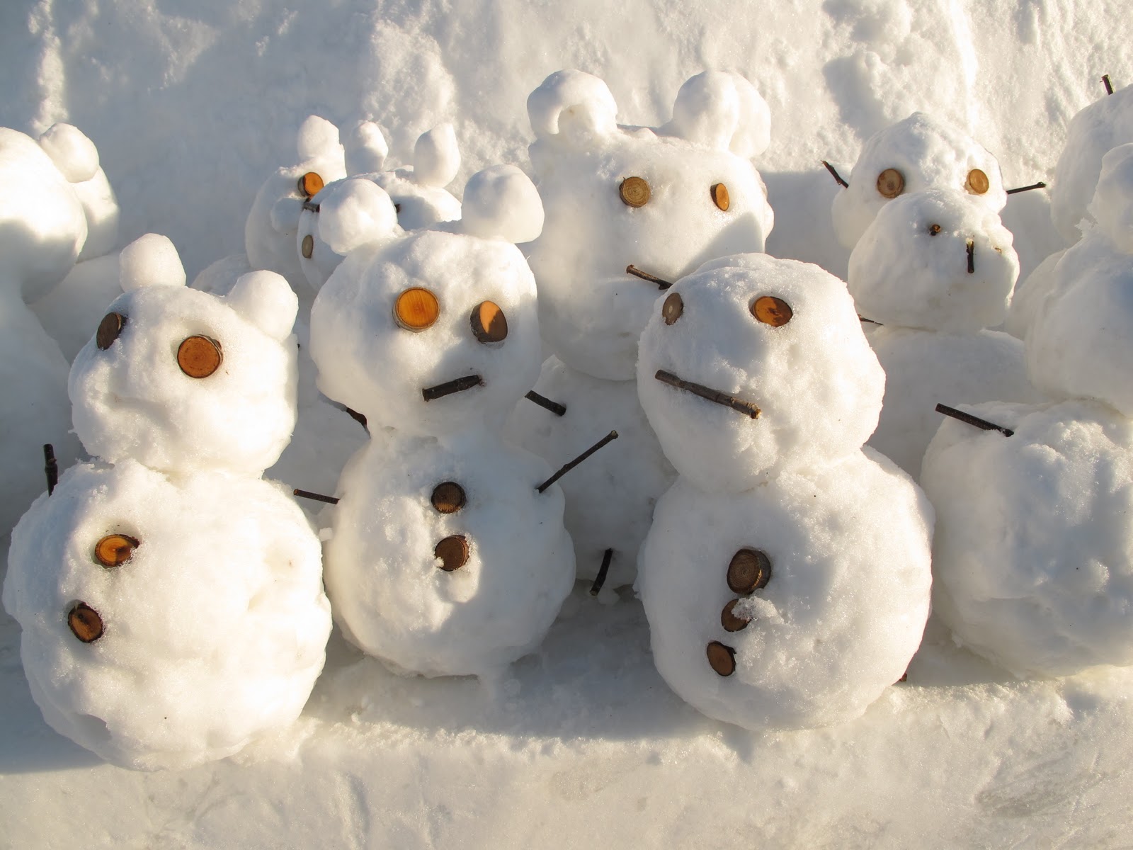 I met up with Jenny again. While she was waiting for me, some women invited her to make a snow candle holder. When I arrived, they let me make one too. I had just lost my gloves (they fell out of my pocket I think), but they let me borrow a pair.